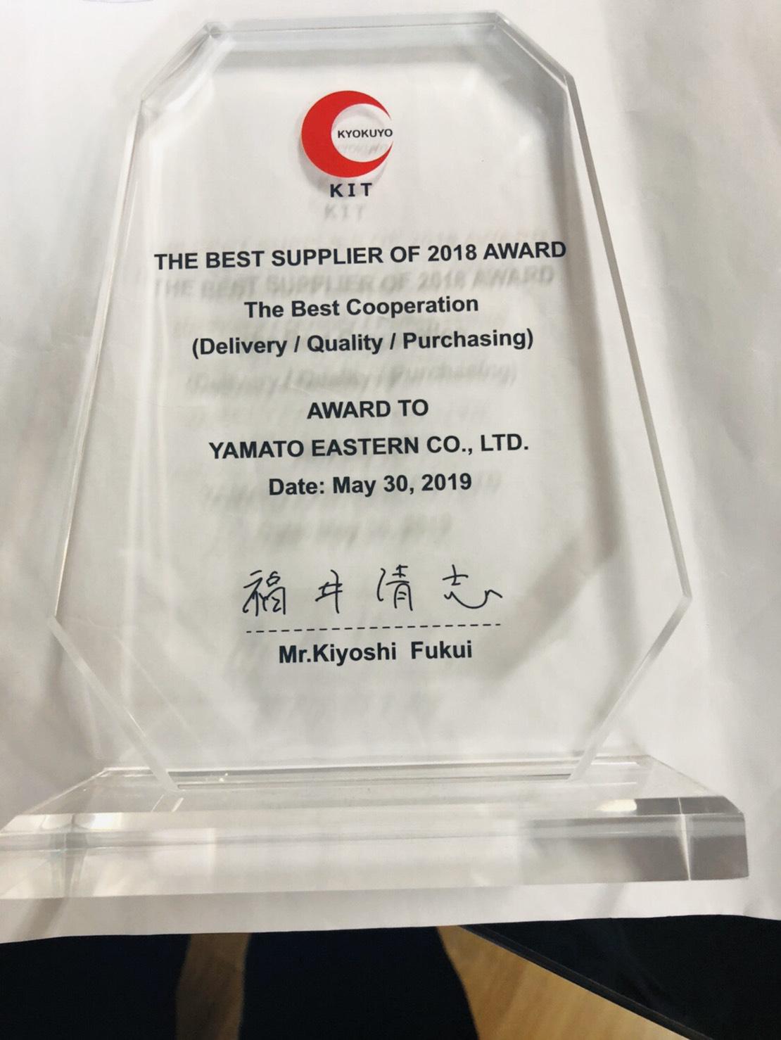 รับรางวัล THE BEST SUPPLIER OF 2018 AWARD จากบริษัท Kyokuyo